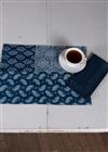 All the True Blue pieces are artisanal textiles. The inky blue and white fabrics are block printed by hand with intricately hand-carved blocks, then patched together in enchanting combinations. Placemats are hand quilted, finished with handstitched edges and reverse to solid indigo backs.