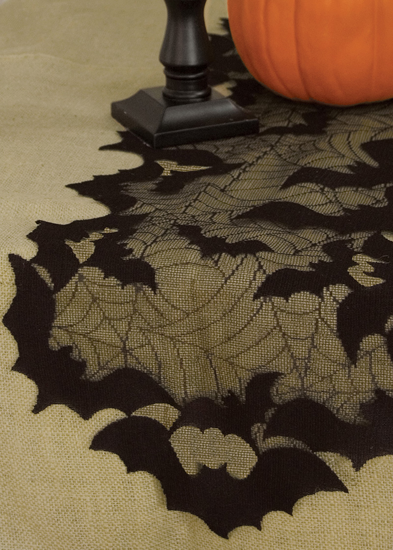 Design theme? Bats. More bats, and still more bats! Fabric surrounding the bats has been cut away for a ghastly dimensional effect.