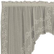The delicate Sheer Divine tier lends a light and airy look to any window. Crafted from the finest clipped lace, this divine sheer features a delicate floral and vine pattern atop a linen like netting. These lightweight sheer curtains are finished with scalloped edges on three sides.